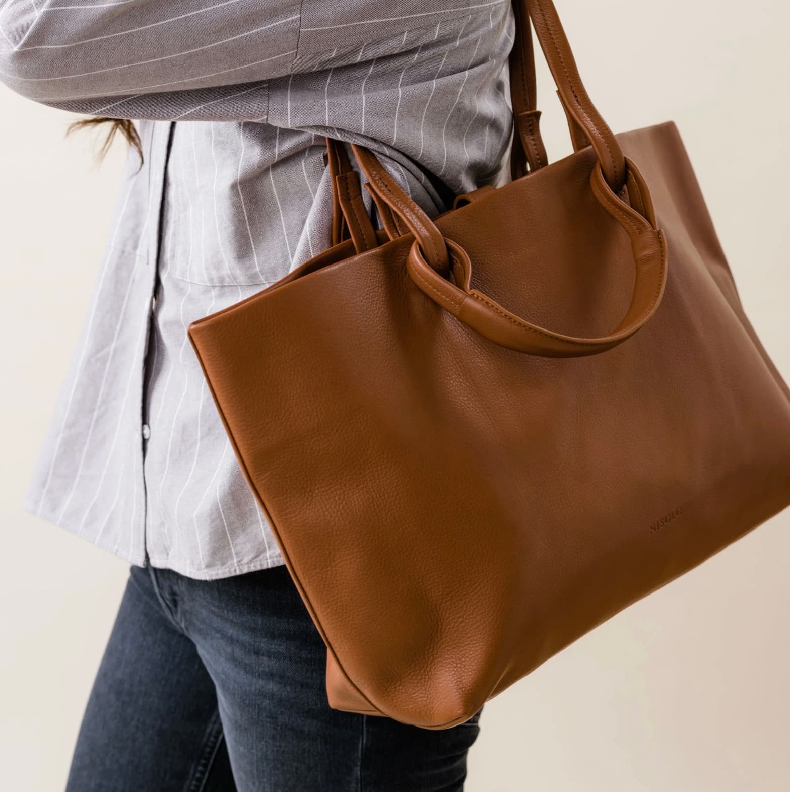 woman carrying a luxurious leather bag on her shoulder